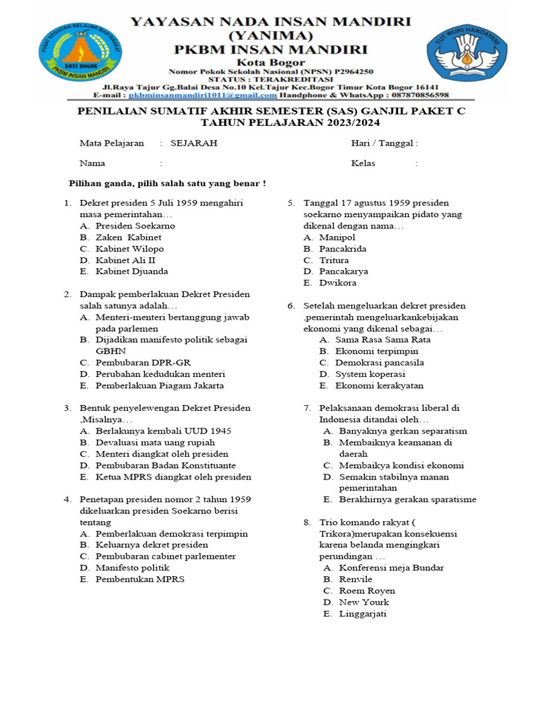 Memahami materi sejarah secara mendalam membutuhkan latihan dan evaluasi yang tepat. Contoh soal menjadi alat yang sangat efektif untuk menguji pemahaman, mengidentifikasi area yang masih lemah, dan membiasakan diri dengan format pertanyaan yang mungkin dihadapi. Artikel ini akan menyajikan serangkaian contoh soal sejarah Paket C kelas 1, lengkap dengan penjelasan yang akan membantu Anda menguasai materi dan membangun kepercayaan diri dalam menghadapi ujian. Kita akan membahas berbagai topik penting yang umumnya tercakup dalam kurikulum sejarah Paket C kelas 1.